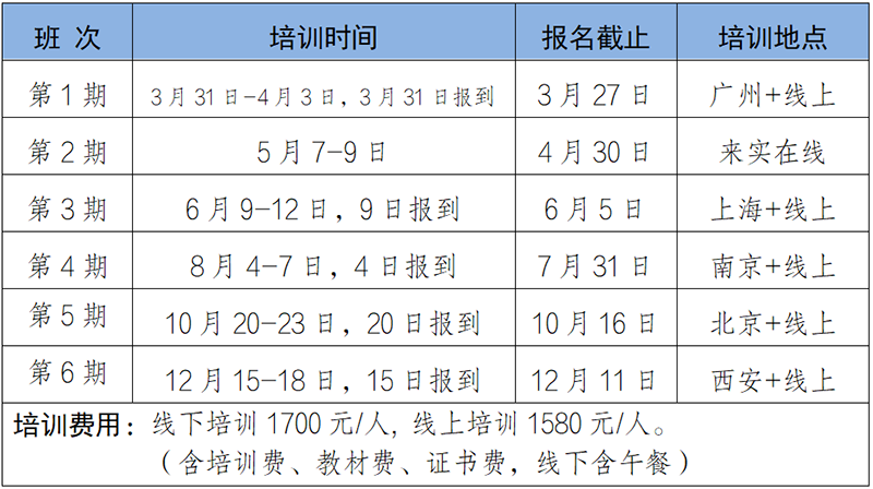 2026年培训课程基本均以线下+线上两种方式同时开展,学员可根据自身需求选择到培训现场或通过线上同步直播的方式进行学习。