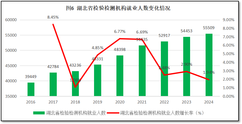 过去9年湖北省检验检测行业就业人口的变化情况,如图6所示。